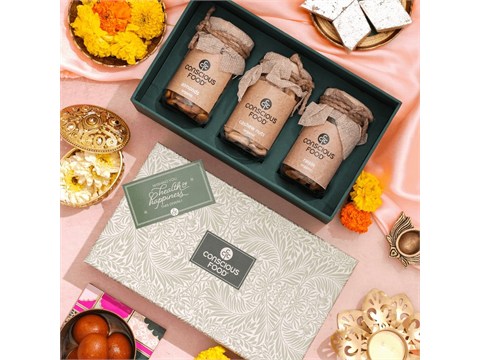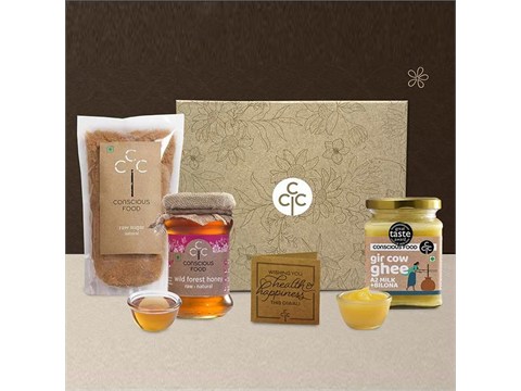 Conscious Food Assorted Diwali Gift Pack (A2 Gir Cow Ghee + Raw Sugar + Honey), 2.4 kg