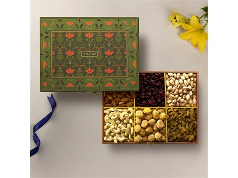 Anand Mogra Dry Fruits Gift Pack (Almonds + Cashews + Raisins + Pistachios) Wooden Box, 400 g