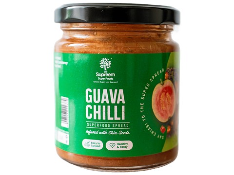 Supreem Super Foods Guava Chilli With Chia Seeds Healthy Fruit Spread - Smooth, Vegan, 200 g